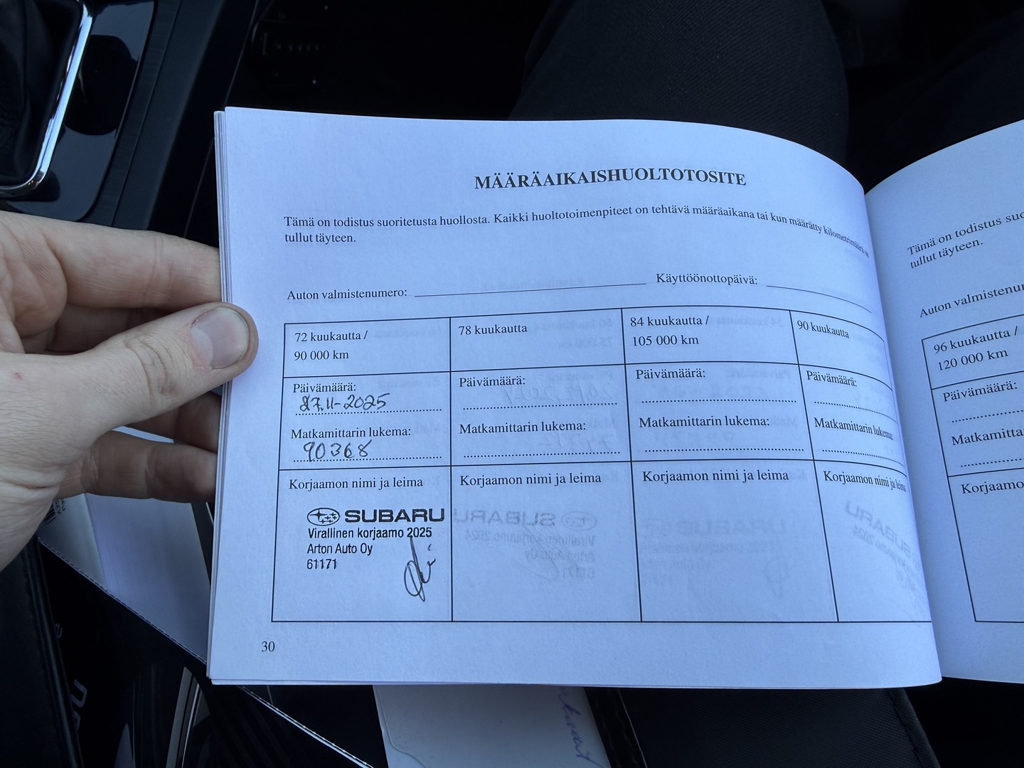 Viimeisin huolto tehty 90tkm 11/2025